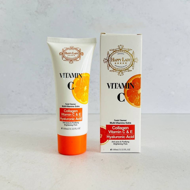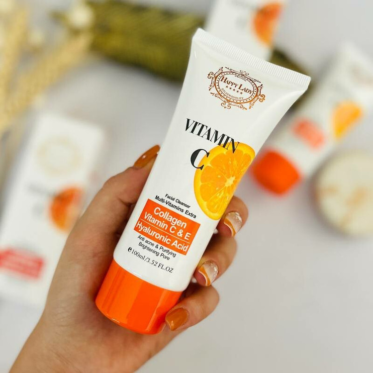 🍊فوم شستشوی صورت ویتامین C هپی لیدی یک پاک کننده صورت حاوی ویتامین C، کلاژن، هیالورونیک اسید و ویتامین E است که برای انواع پوست مناسب است.