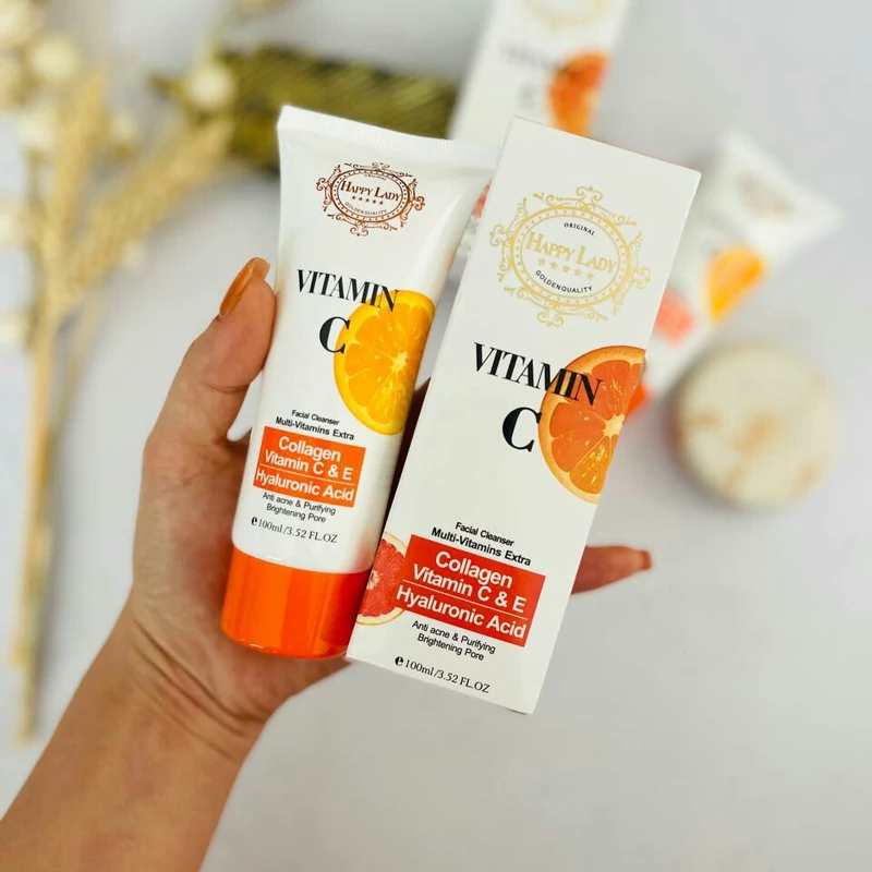 🍊فوم شستشوی صورت ویتامین C هپی لیدی یک پاک کننده صورت حاوی ویتامین C، کلاژن، هیالورونیک اسید و ویتامین E است که برای انواع پوست مناسب است.